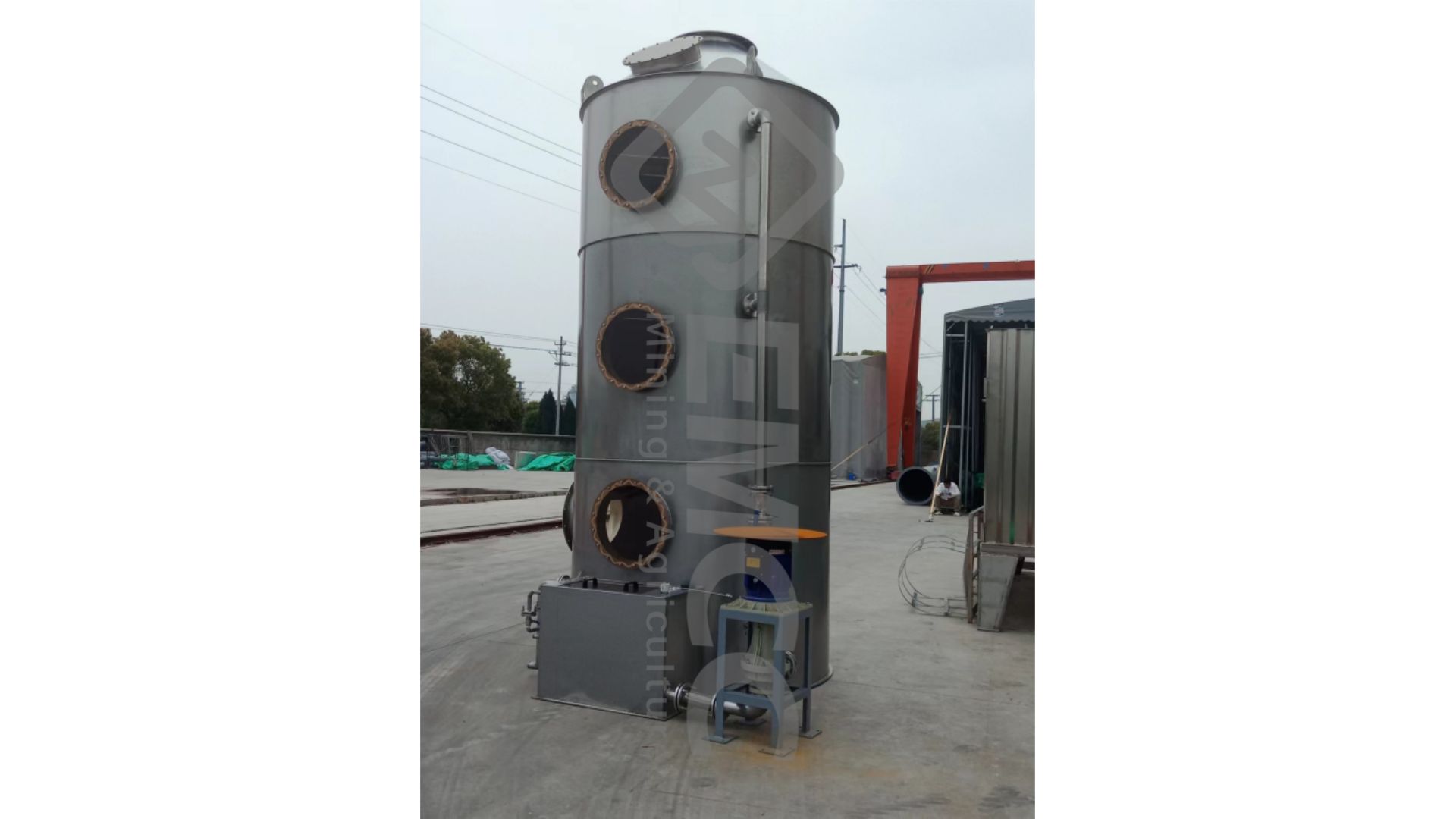 Una torre de pulverización es un tipo común de equipo de tratamiento de gases que se utiliza para eliminar los contaminantes de los gases de escape. Por lo general, consta de una torre alta con una unidad de pulverización de líquido en la parte inferior y una salida de gas en la parte superior. Los gases de escape ingresan a la torre y se rocían con un absorbente líquido a través de un dispositivo de pulverización, de modo que los contaminantes entran en contacto con el líquido y se adsorben. Posteriormente, el gas limpio se descarga por la parte superior, mientras que la suciedad permanece en el líquido. La torre de pulverización es adecuada para tratar todo tipo de gases de escape, como hollín, niebla ácida, materia orgánica, etc. Tiene las ventajas de una estructura simple, operación conveniente y alta eficiencia, y es ampliamente utilizado en el tratamiento de gases en el proceso de producción industrial.